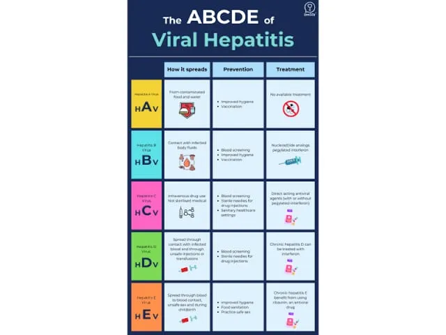 ہیپاٹائٹس کی پانچ اقسام A,B,C,Dاور E ہیں جن میں سے B اور C سب سے زیادہ خطرناک تصور کی جاتی ہیں کیونکہ یہ مکمل طور پر جگر کو متاثر کر سکتی ہیں۔ ہیپاٹائٹس کی اہم علامات میں‌ جسمانی کمزوری ، بخار، یرقان (آنکھوں اور جلد کا پیلا ہونا) ، پیٹ میں درد، (خاص طور پر دائیں جانب) متلی،قے، بھوک کی کمی اور وزن کی کمی ہیں.Untitled 2025 08 10T160045.287