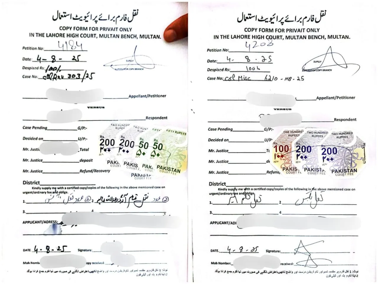 ملتان: ہائیکورٹ ملتان اور بہاولپور بینچز میں نقول فارم کے ساتھ اضافی 500 روپے کورٹ فیس کی وصولی کا معاملہ کئی ماہ سے حل نہیں ہونے سے جنوبی پنجاب کے عوام کو پریشانی کا سامنا کرنا پڑ رہا ہے.
