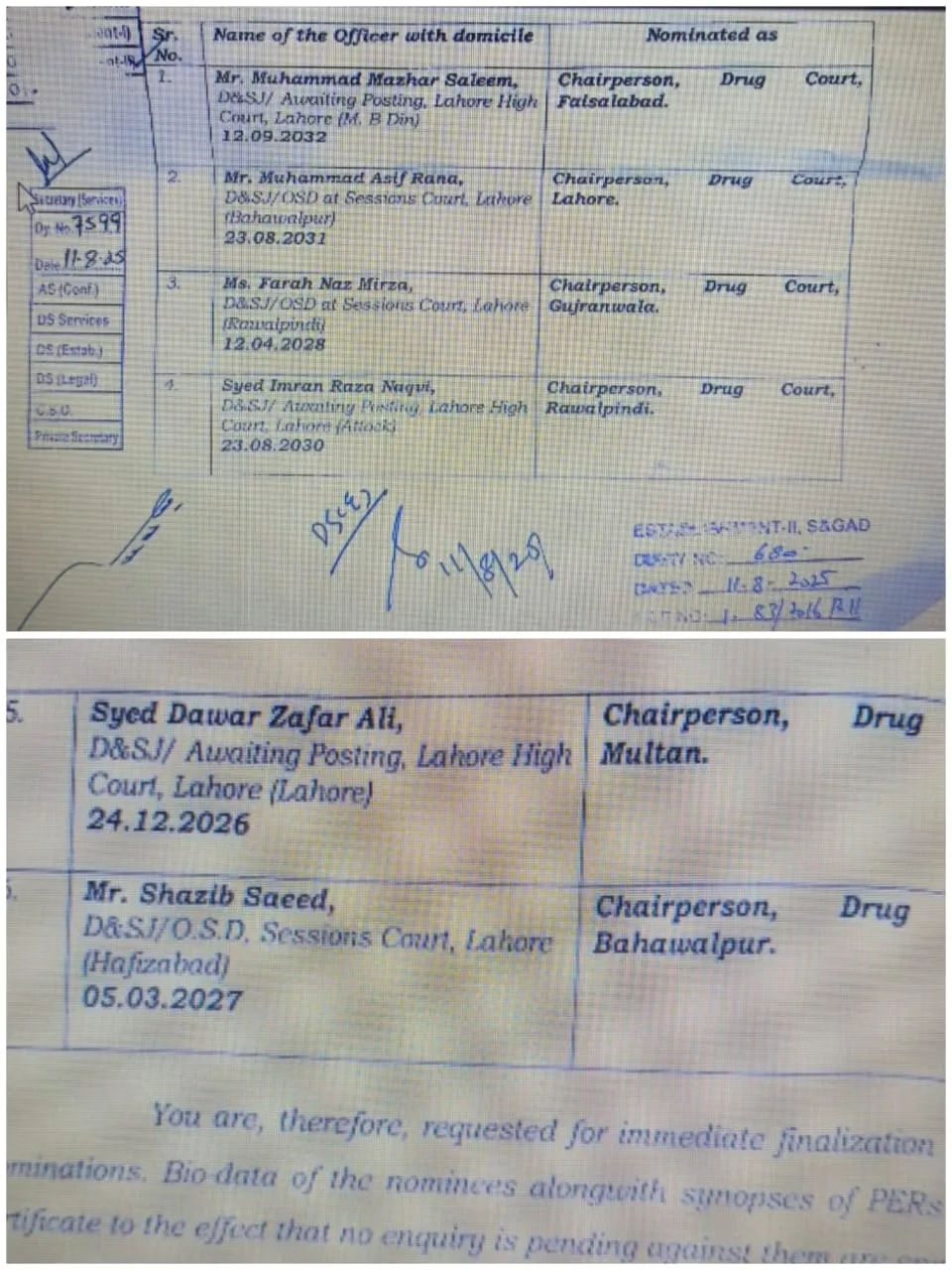 اس ضمن میں‌ تعیناتی کے منتظر ڈسٹرکٹ اینڈ سیشن جج محمد مظہر سلیم کو چیئرپرسن ڈرگ کورٹ فیصل آباد تعینات کیا گیا ہے. Untitled 2025 09 09T230253.986