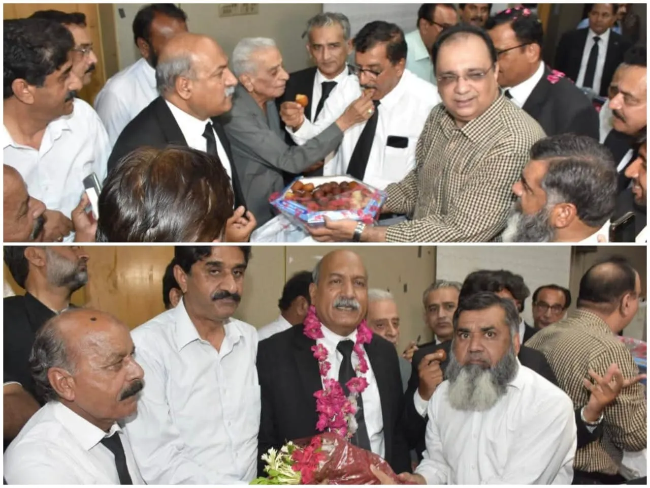 اس موقع پر وکلاء ملک محبوب سندیلہ، نشید عارف گوندل، زاکر حسین نقوی، ملک محمد اکرم بھٹی، رانا معراج خالد، محمد ندیم کانجو، محمد خالد فاروق، شاہد سلطان اور دیگر نے سابق صدر ہائیکورٹ بار ملتان سید ریاضالحسن گیلانی کو مبارکباد پیش کی اور انہیںپھولوںکے ہار پہنانے کے ساتھ مٹھائی بھی کھلائی.