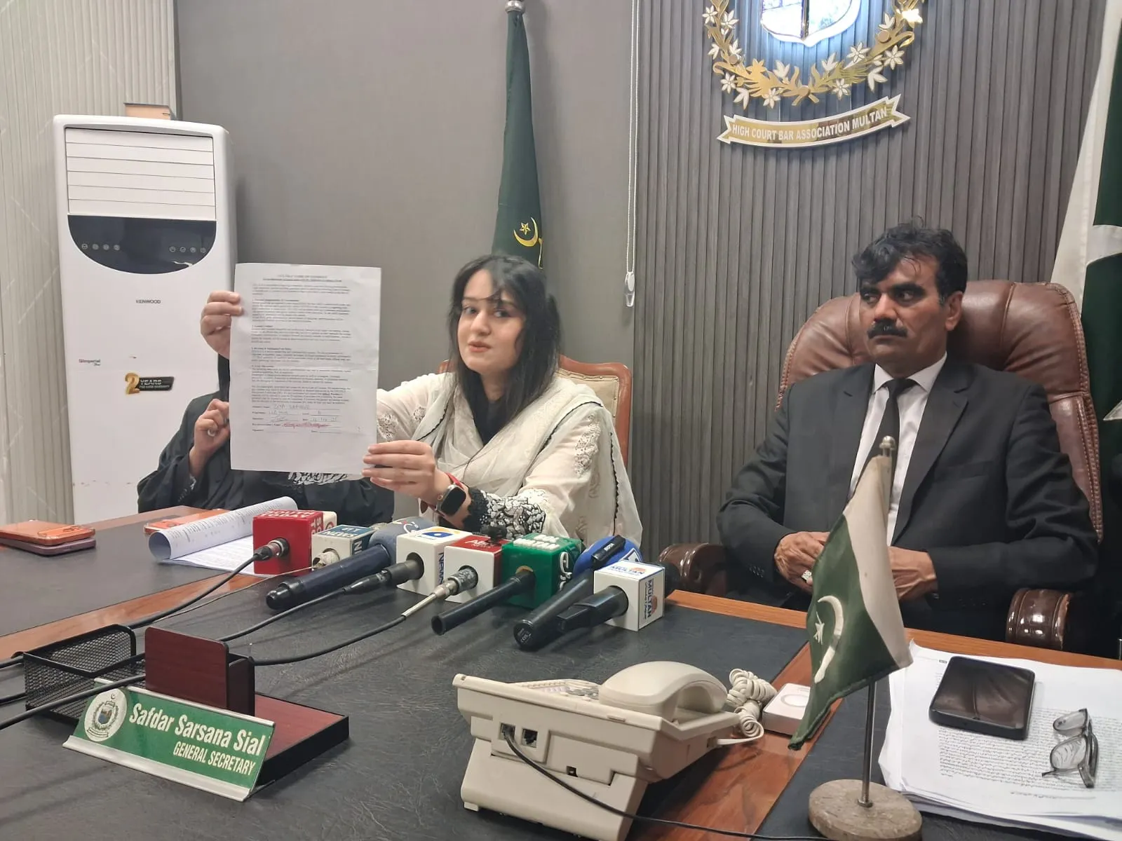 ملتان:مقامی نجی لاء کالج کی طالبہ زویا خان نے ہائیکورٹ بار میں پریس کانفرنس کرتے ہوئے یونیورسٹی انتظامیہ اور طلبہ پر ہراسگی کے سنگین الزامات عائد کئے۔اس موقع پر جنرل سیکرٹری ہائیکورٹ بار صفدر سرسانہ بھی موجود تھے۔